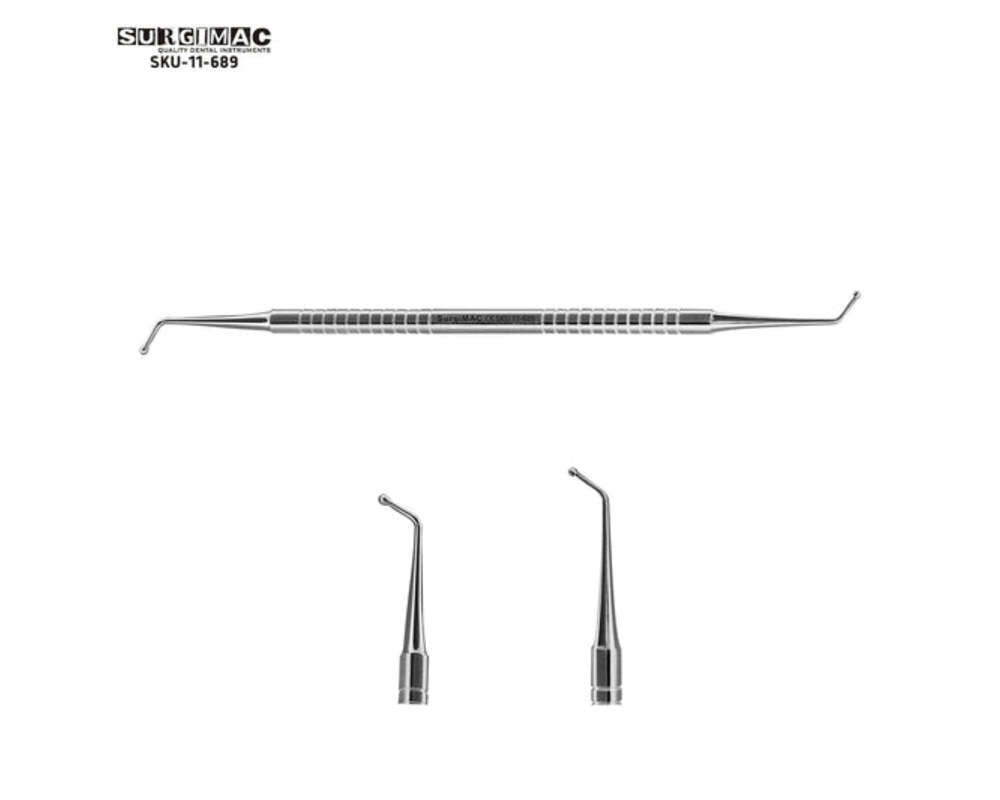 SurgiMac Eco Series #26/27S Ball Burnishers, Restorative Instrument is designed to condense, smooth, carve, and polish amalgam restorations. With ends measuring 2.1 mm and 1.3 mm, it ensures precise application and finishing for optimal restorative results.