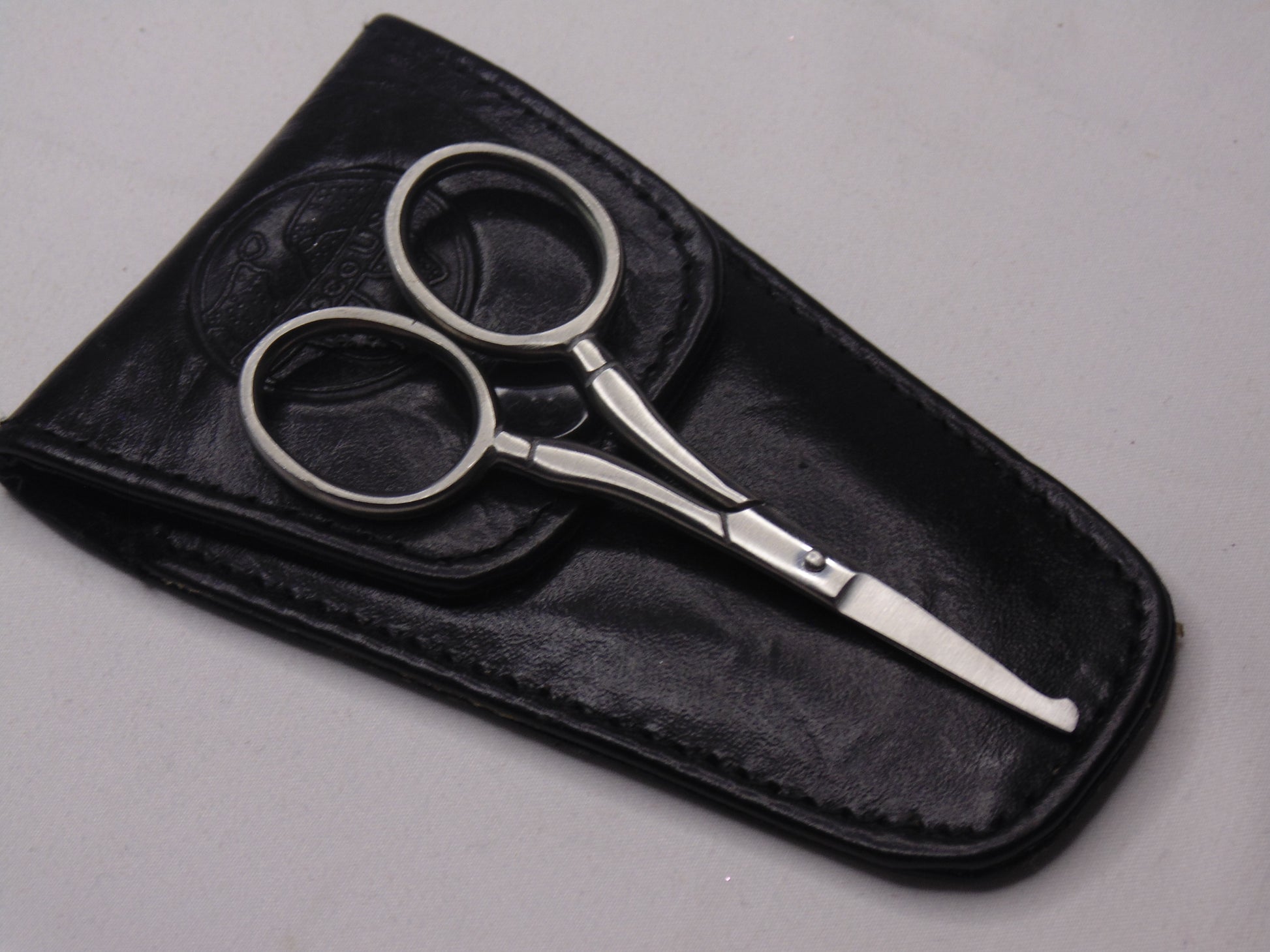 These wonderful scissors have a smooth lobed tip to one blade. This protective tip can slide between layers of fabric where you wish to cut and remove the upper layer but leave the hidden layer below intact, such in Carrickmacross lace, shadow appliqué, or reverse appliqué.