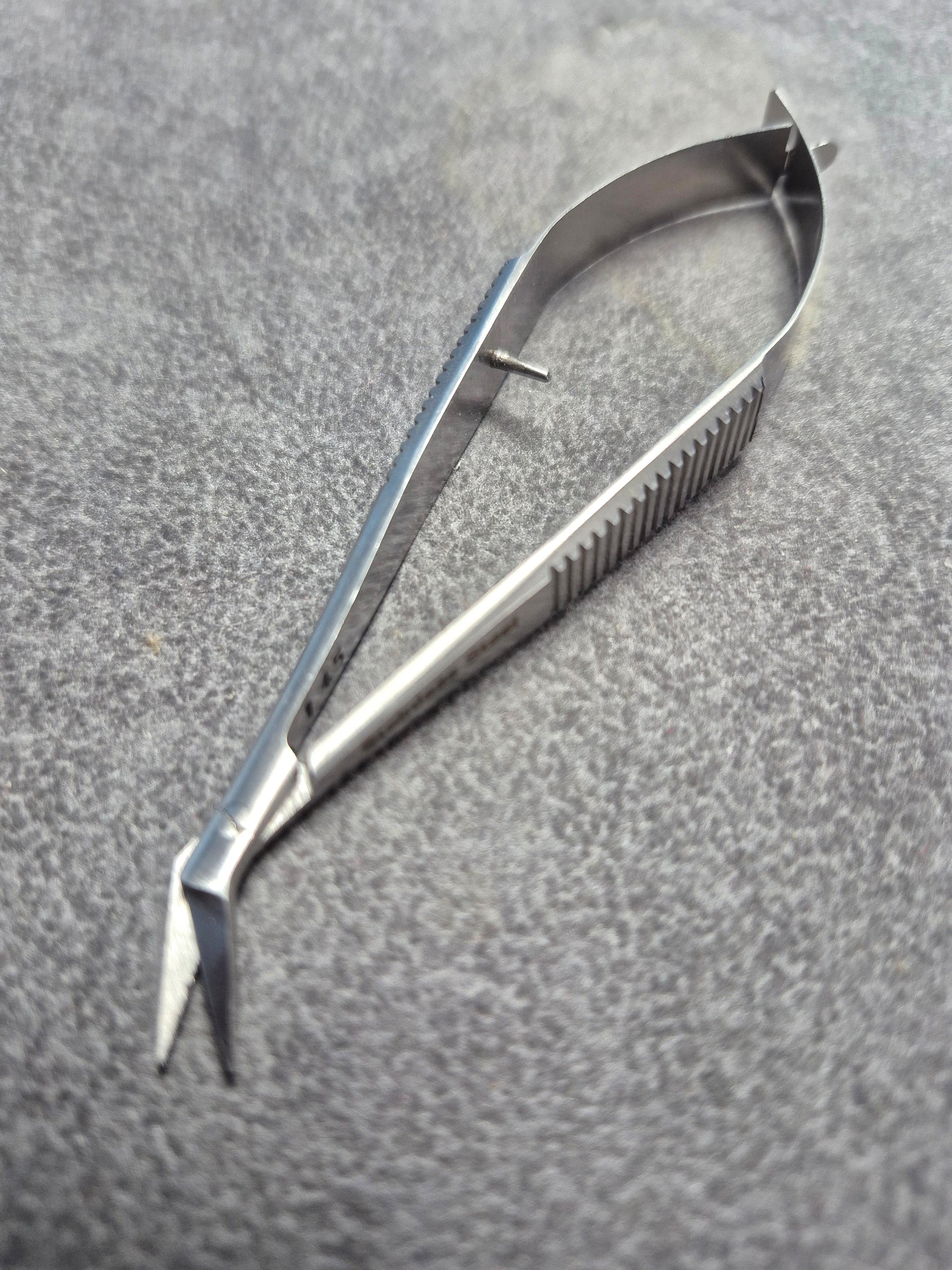 Vannas micro-scissors are just 3" in length and have a cut length of 6mm. They are made of surgical 420 stainless and have an extra fine point. Available in straight, curved and angled