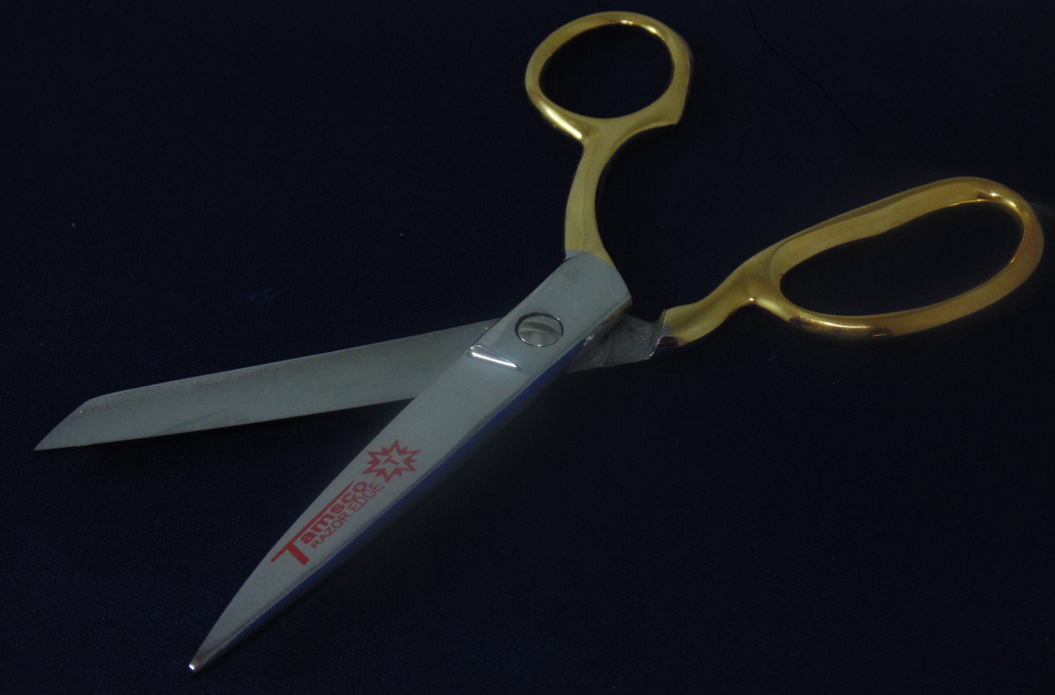 - 8" heavy duty fabric shear, bent trimmer style with knife edge (non-serrated). Cuts 6 layers of fabric.